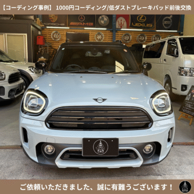 【修理実績事例】MINI F60型|1000円コーディング|低ダストブレーキパッド前後前後交換|を施工